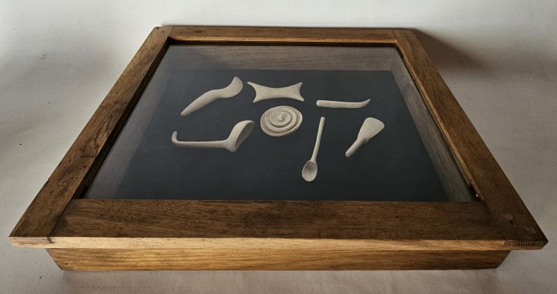 Dama honek erabiltzen zituen alferrikako tresna-sorta sinestezinaren zati bat dugu.